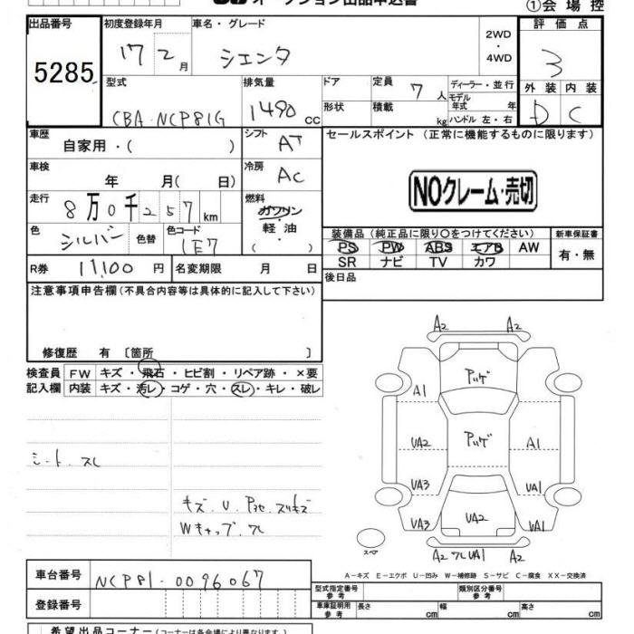 TOYOTA SIENTA - лот 5285