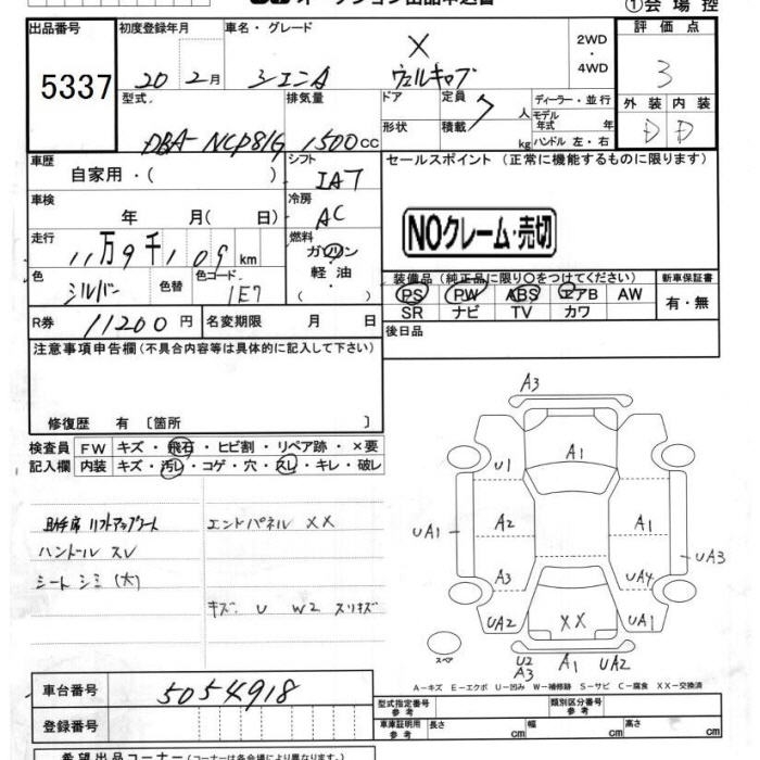 TOYOTA SIENTA X WELL CAB - лот 5337
