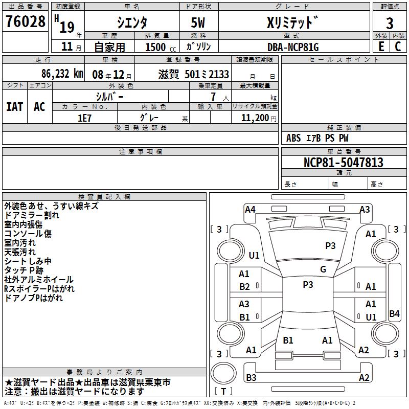 TOYOTA SIENTA X LIMITED - лот 76028
