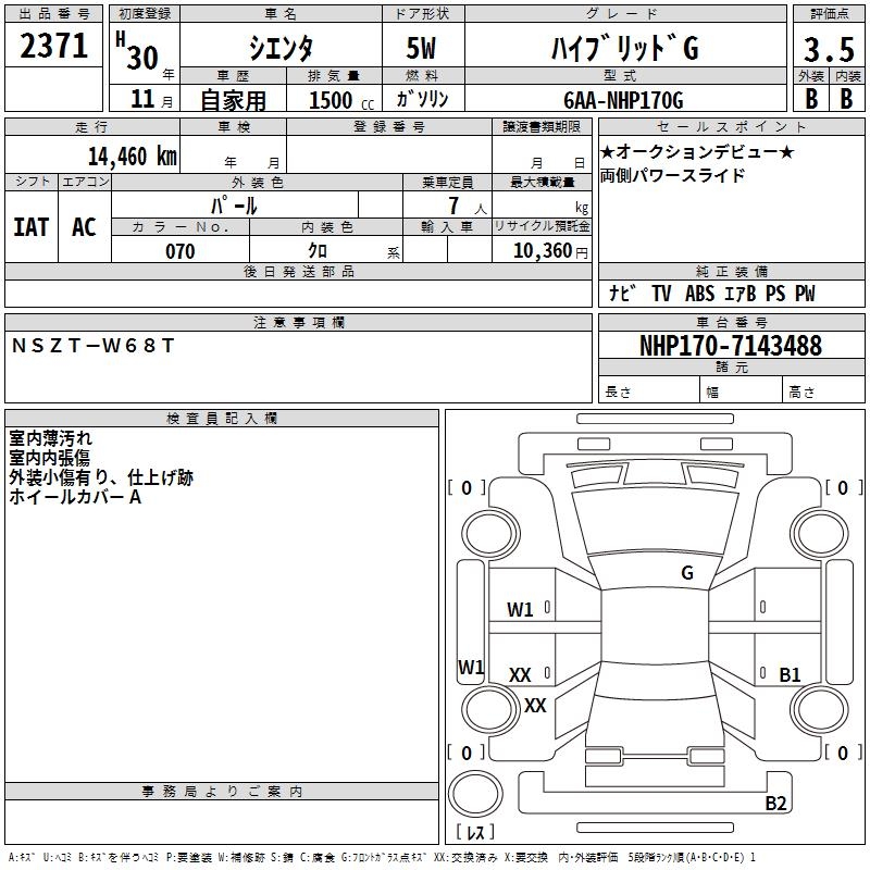 TOYOTA SIENTA HYBRID G - лот 2371