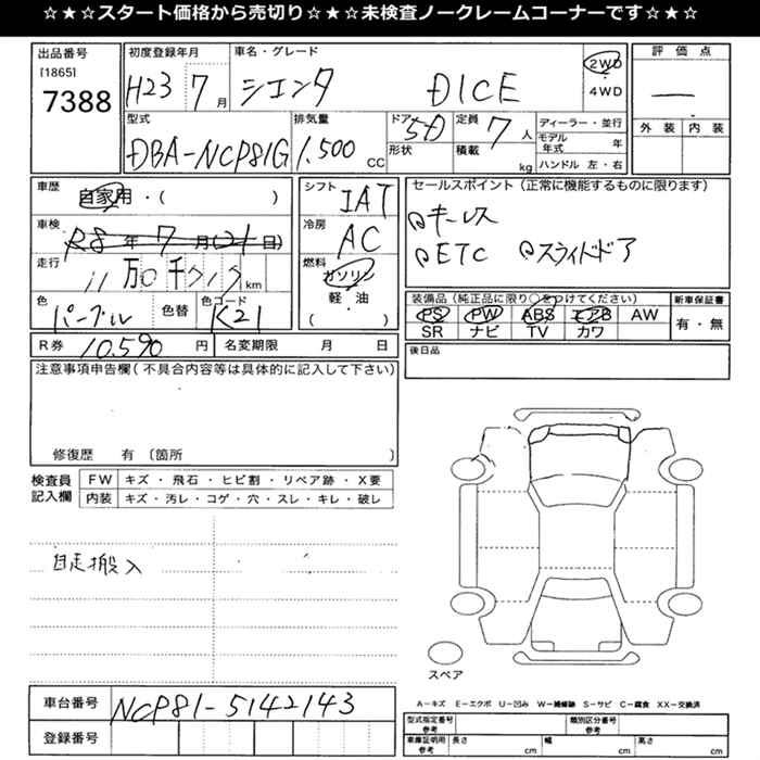 TOYOTA SIENTA DICE - лот 7388