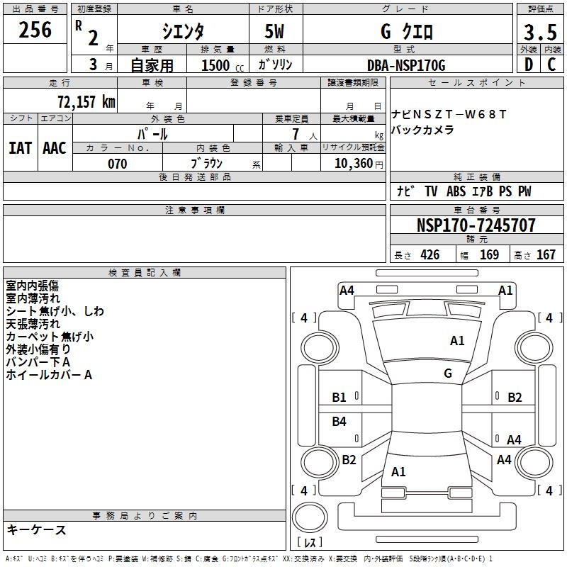 TOYOTA SIENTA GKERO - лот 256