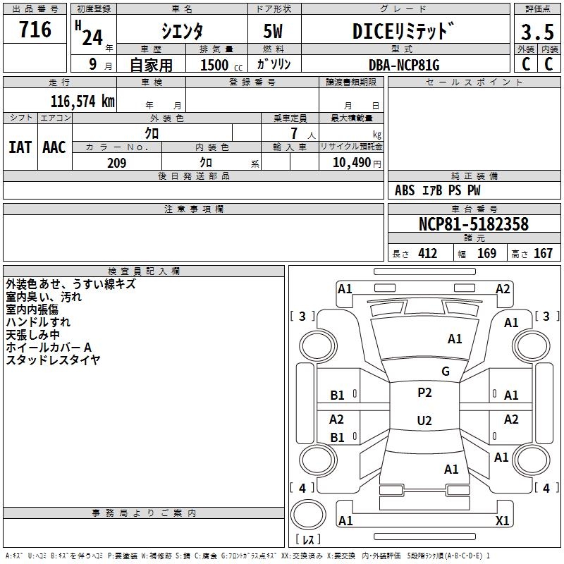 TOYOTA SIENTA DICE LIMITED - лот 716