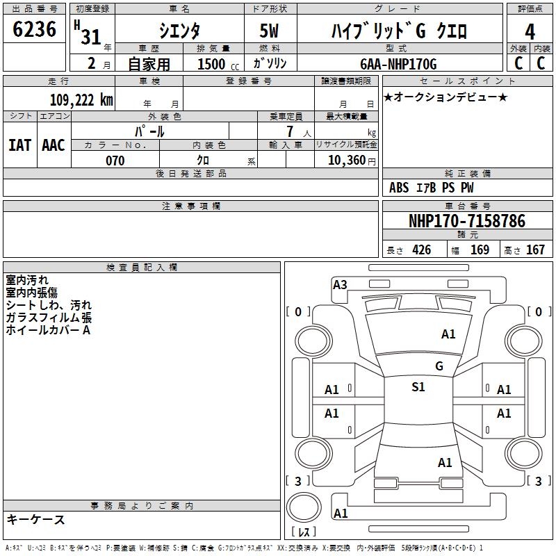 TOYOTA SIENTA HYBRID GKERO - лот 6236