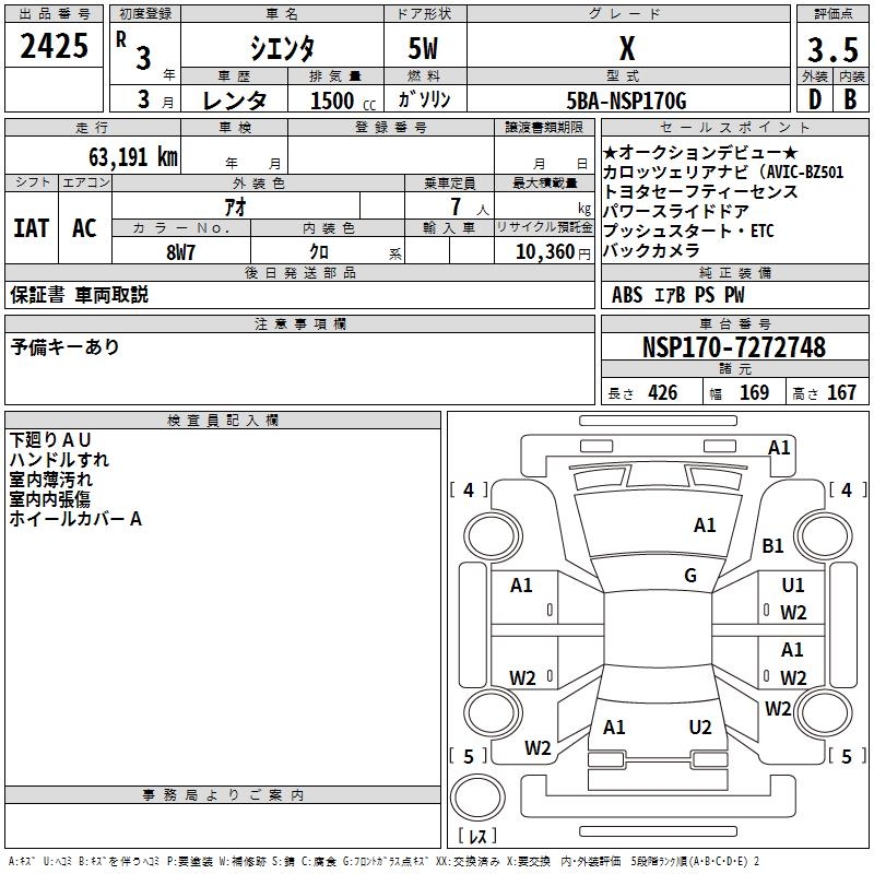TOYOTA SIENTA X - лот 2425