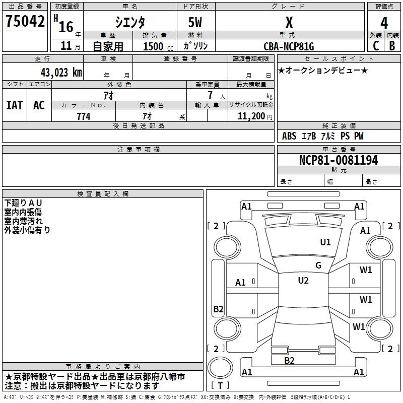 TOYOTA SIENTA X - лот 75042