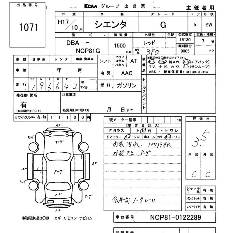TOYOTA SIENTA G - лот 1071