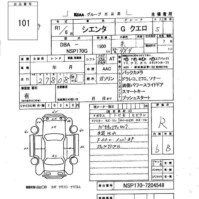 TOYOTA SIENTA GKERO - лот 101