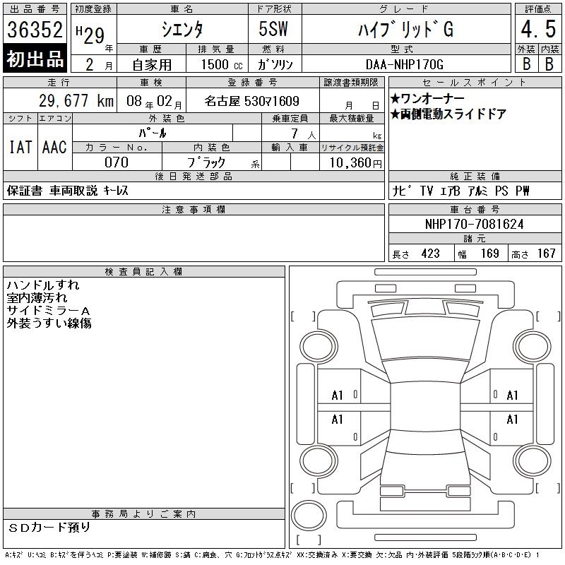 TOYOTA SIENTA HYBRID G - лот 36352