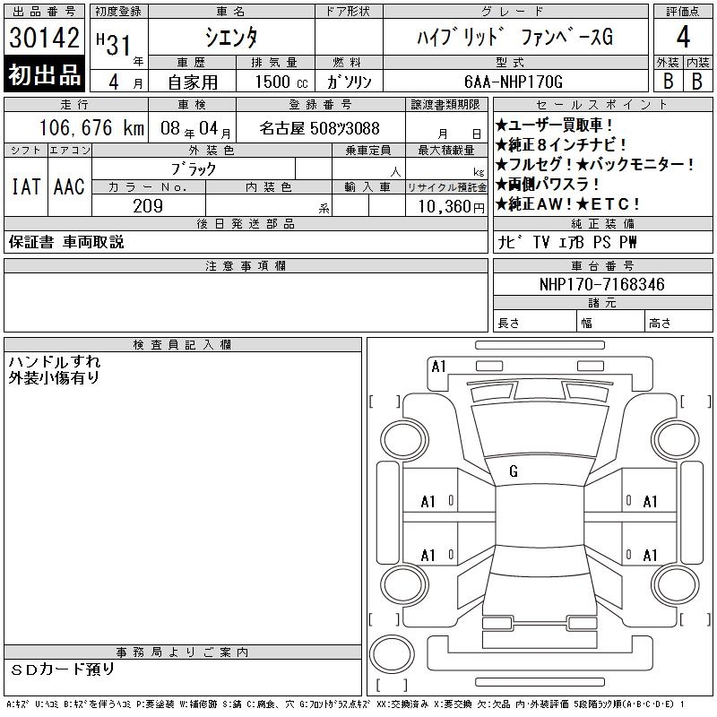 TOYOTA SIENTA HYBRID FAN BASE G - лот 30142