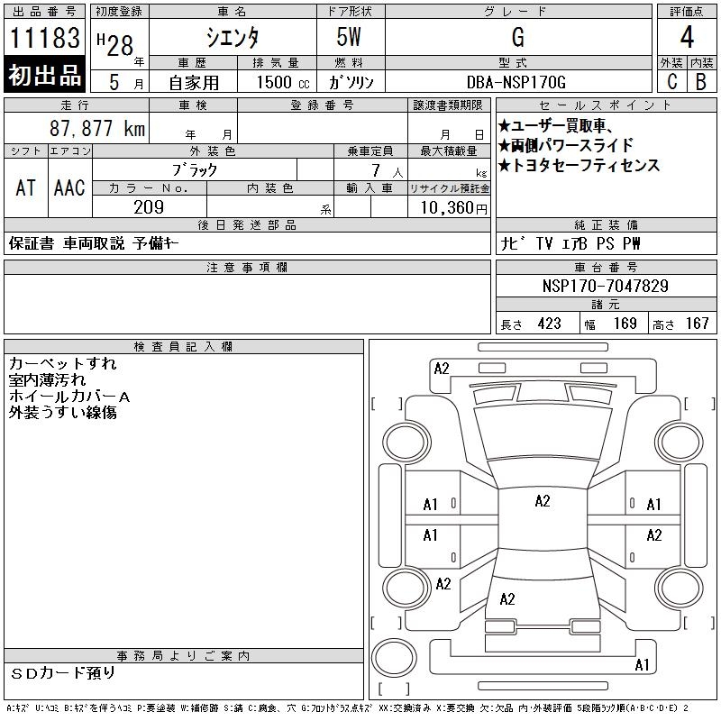 TOYOTA SIENTA G - лот 11183