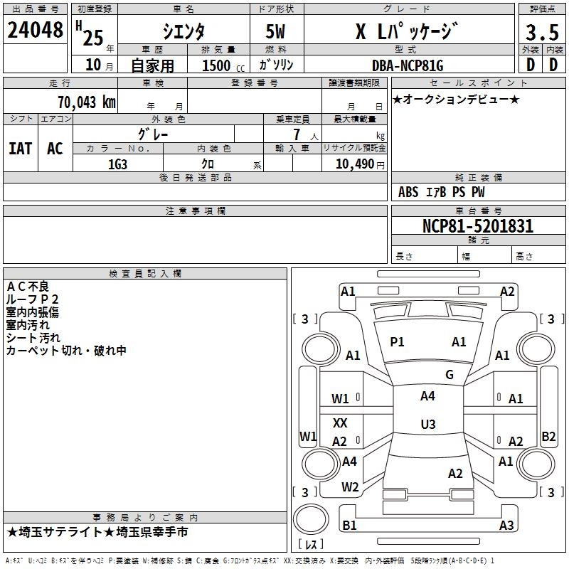 TOYOTA SIENTA X L PACKAGE - лот 24048