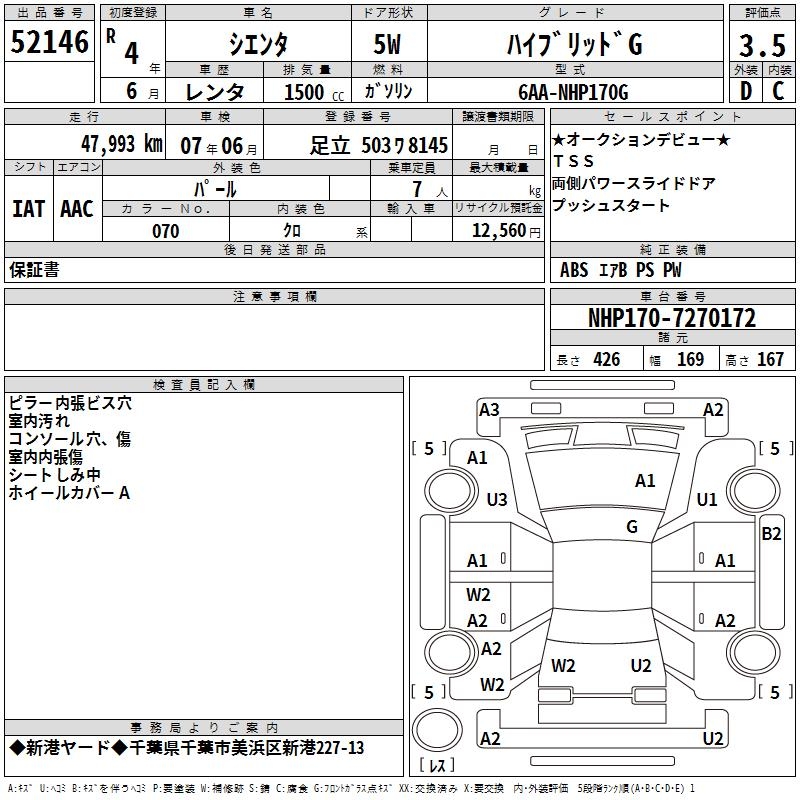 TOYOTA SIENTA HYBRID G - лот 52146