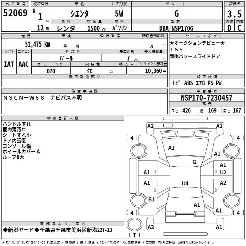 TOYOTA SIENTA G - лот 52069