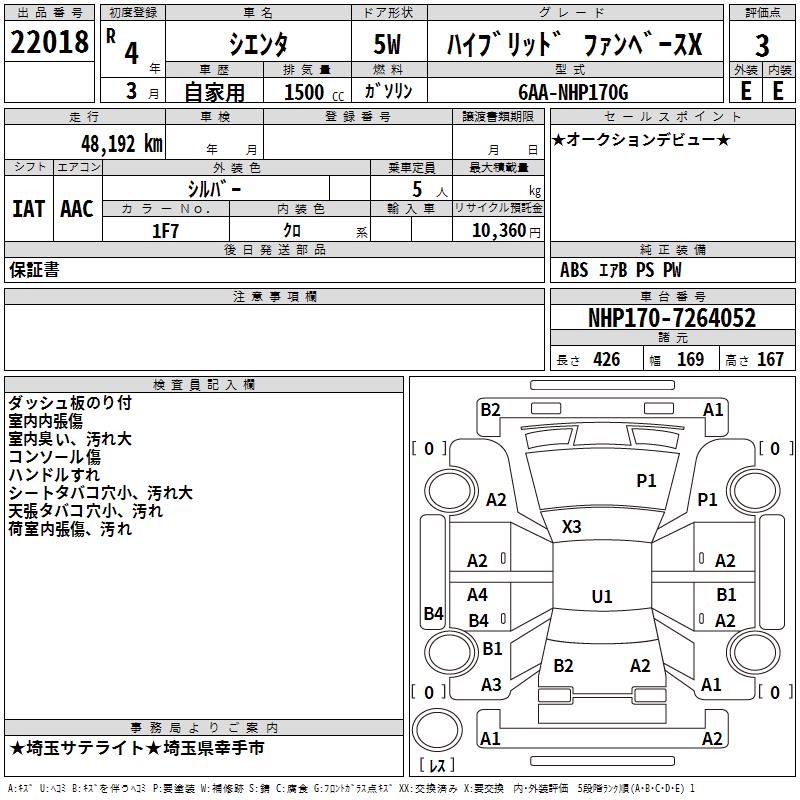 TOYOTA SIENTA HYBRID FAN BASE X - лот 22018