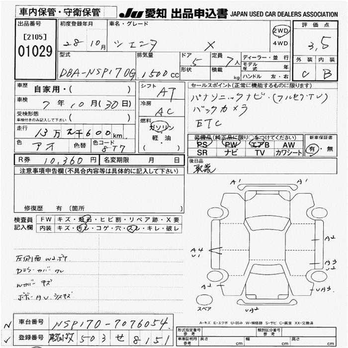 TOYOTA SIENTA X - лот 1029