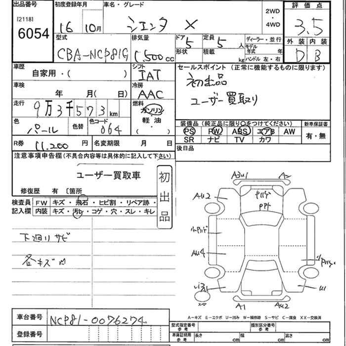 TOYOTA SIENTA X - лот 6054