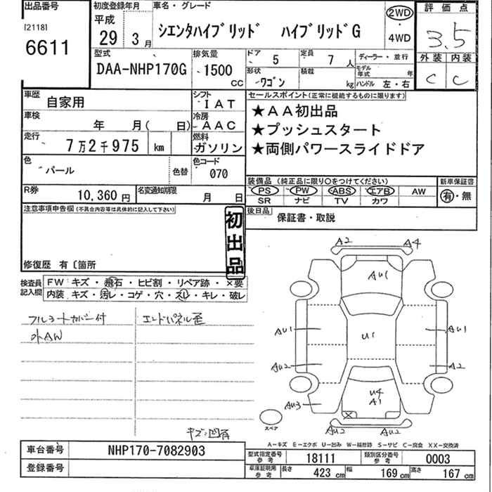 TOYOTA SIENTA HYBRID G - лот 6611
