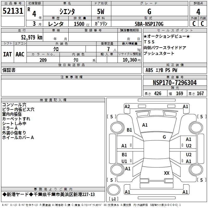 TOYOTA SIENTA G - лот 52131