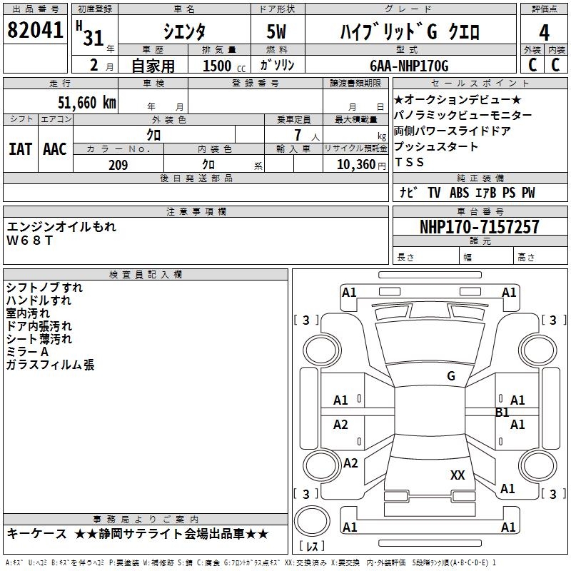 TOYOTA SIENTA HYBRID GKERO - лот 82041