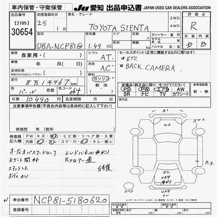 TOYOTA SIENTA - лот 30654
