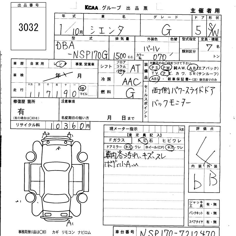 TOYOTA SIENTA G - лот 3032
