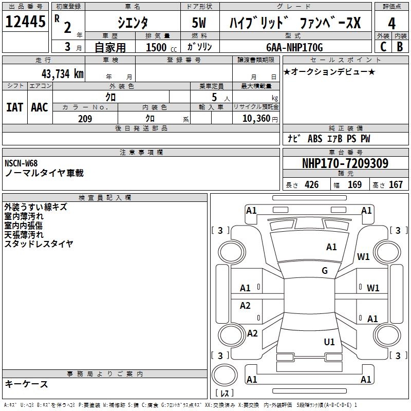 TOYOTA SIENTA HYBRID FAN BASE X - лот 12445