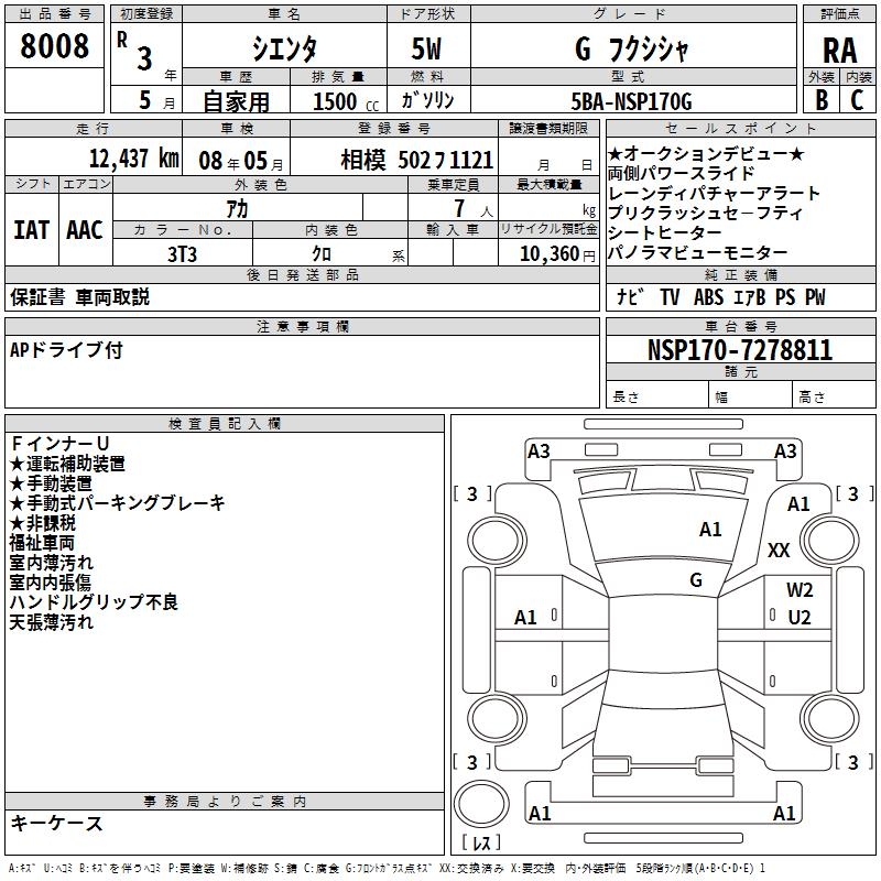 TOYOTA SIENTA G WELLFARE CAR - лот 8008