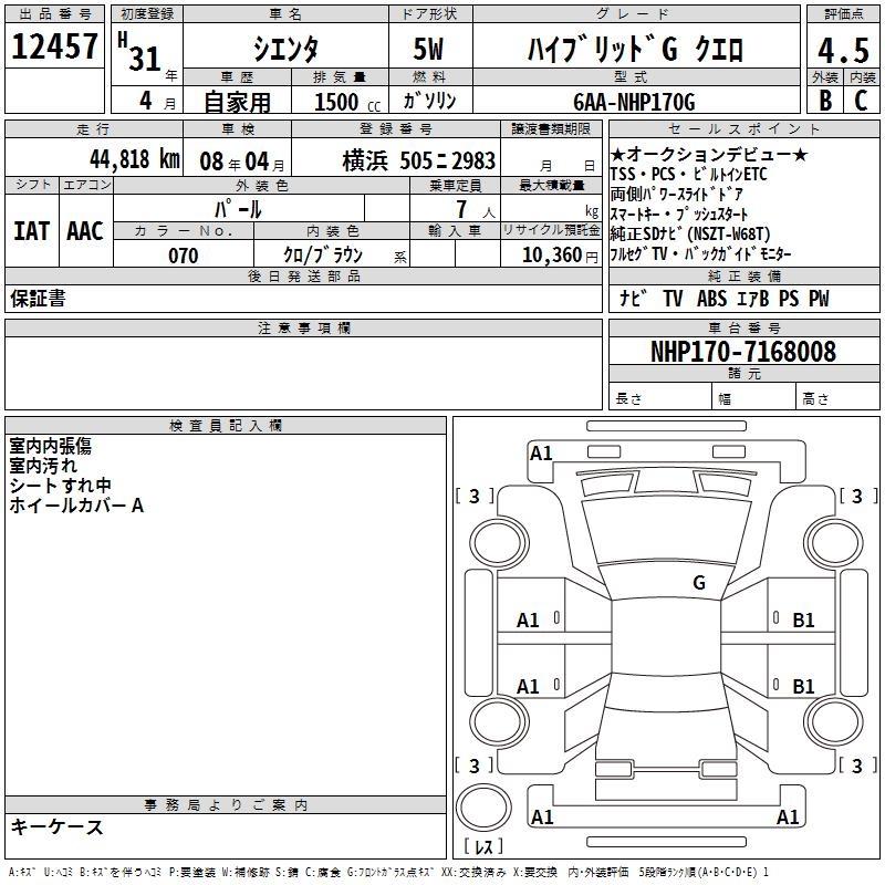 TOYOTA SIENTA HYBRID GKERO - лот 12457