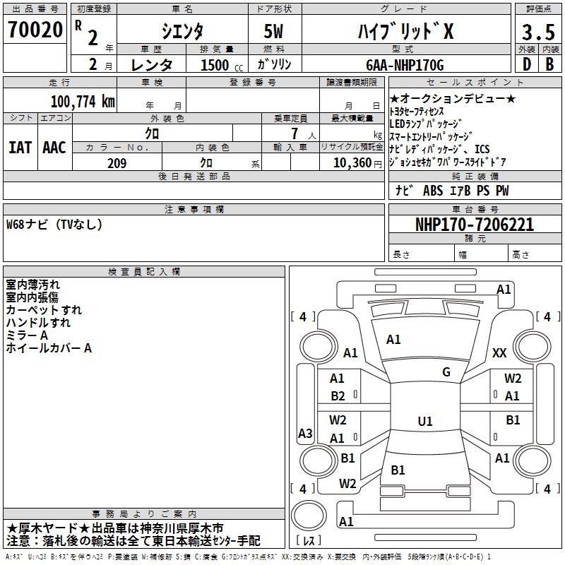 TOYOTA SIENTA HYBRID X - лот 70020