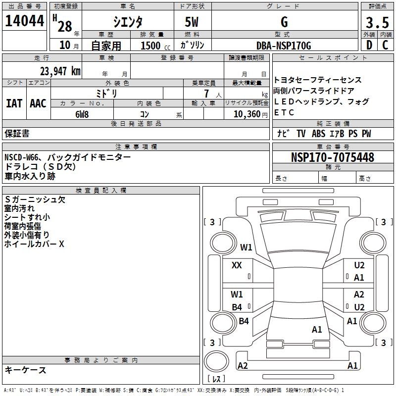 TOYOTA SIENTA G - лот 14044