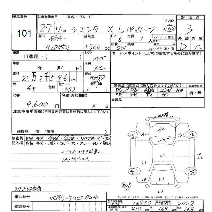 TOYOTA SIENTA 4WD X L PACKAGE - лот 101