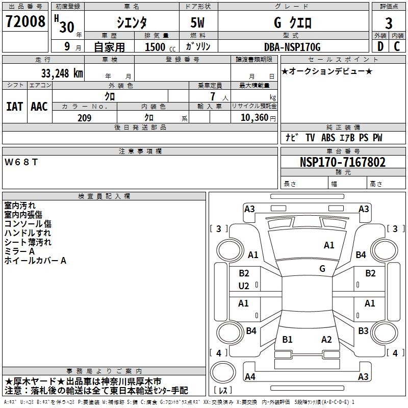 TOYOTA SIENTA GKERO - лот 72008