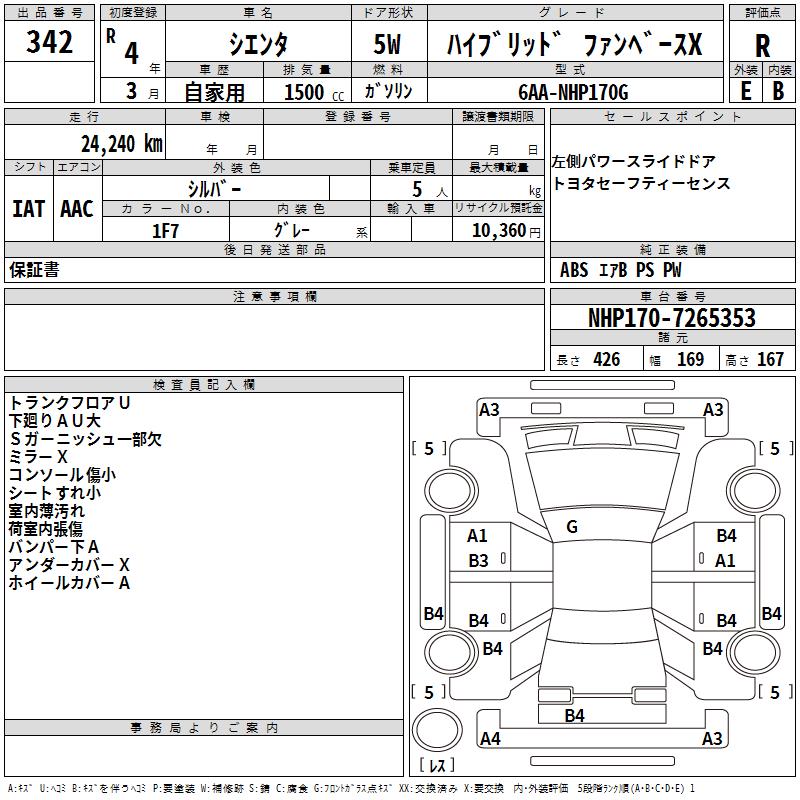 TOYOTA SIENTA HYBRID FAN BASE X - лот 342