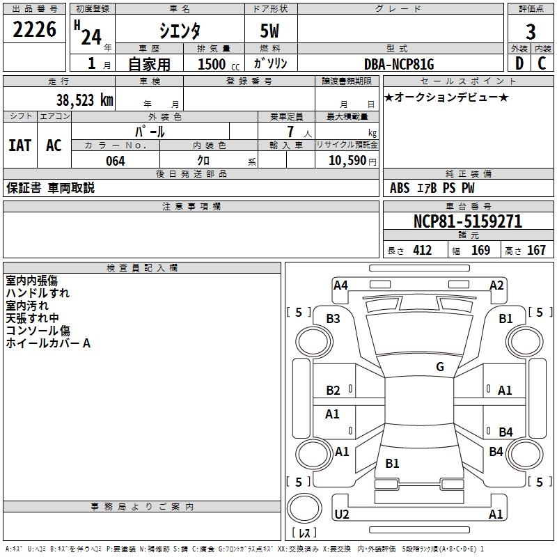 TOYOTA SIENTA - лот 2226