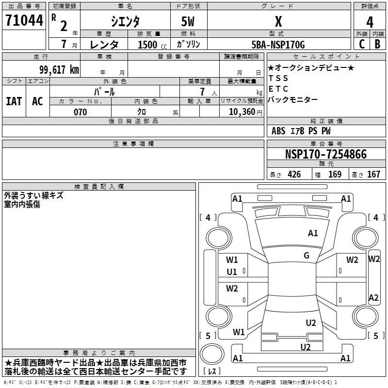 TOYOTA SIENTA X - лот 71044