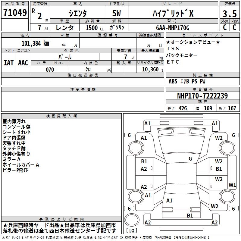 TOYOTA SIENTA HYBRID X - лот 71049