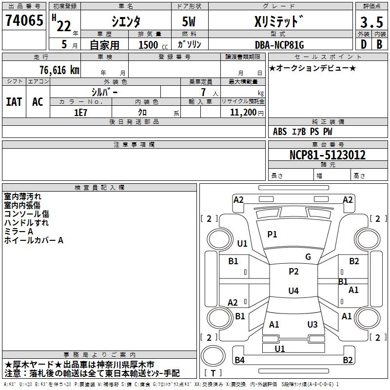 TOYOTA SIENTA X LIMITED - лот 74065