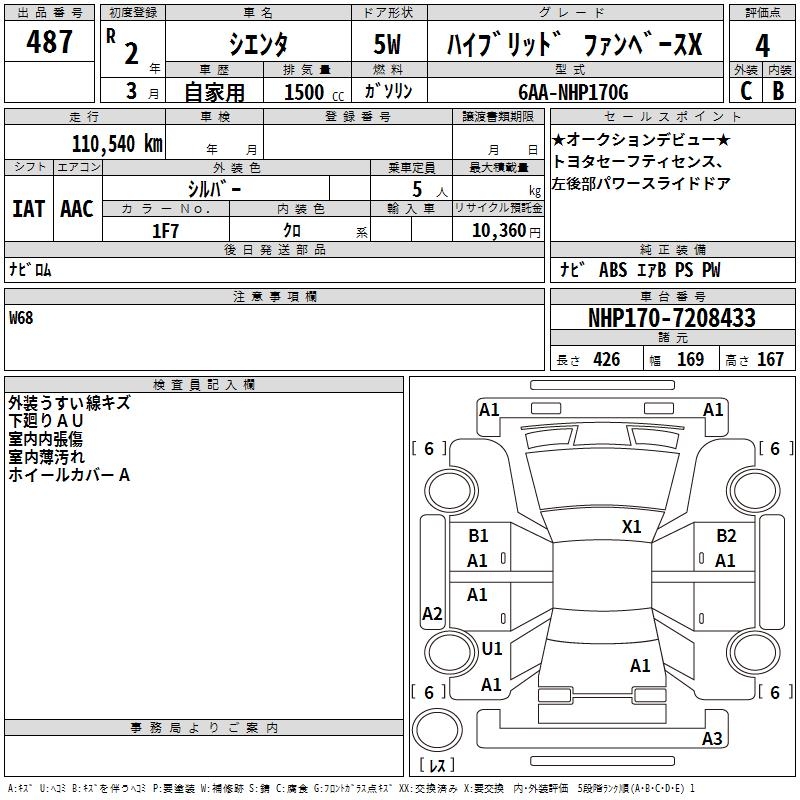 TOYOTA SIENTA HYBRID FAN BASE X - лот 487