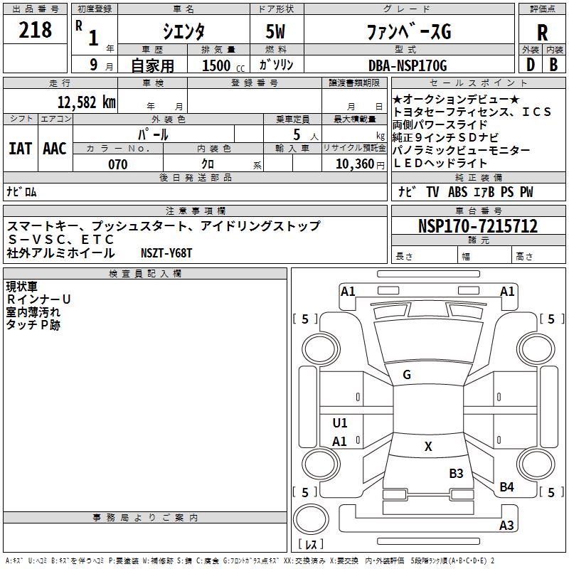 TOYOTA SIENTA FAN BASE G - лот 218
