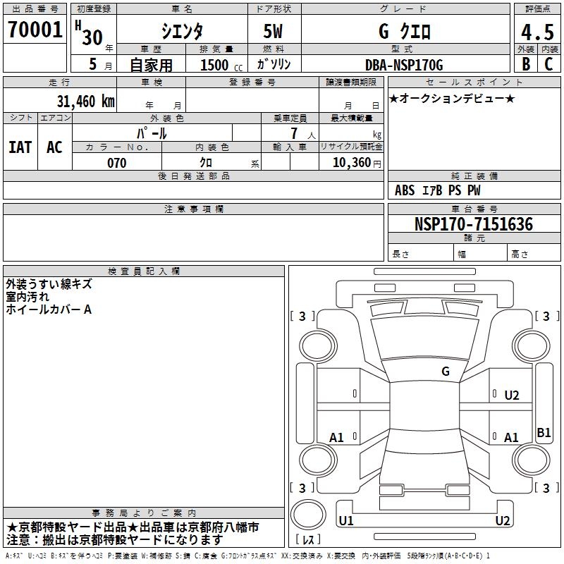 TOYOTA SIENTA GKERO - лот 70001