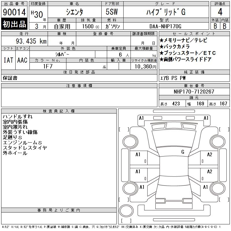 TOYOTA SIENTA HYBRID G - лот 90014