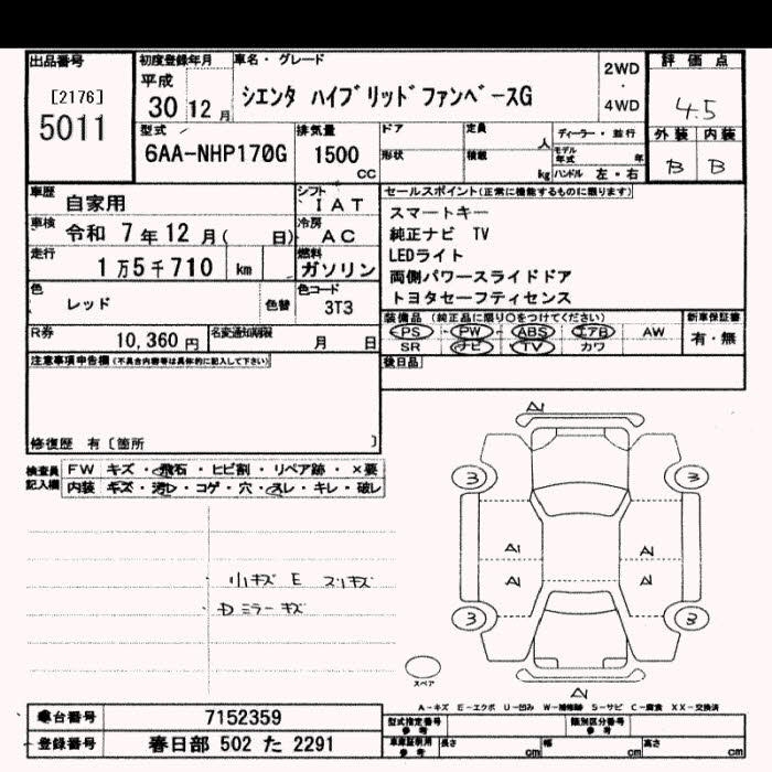 TOYOTA SIENTA HYBRID FAN BASE G - лот 5011