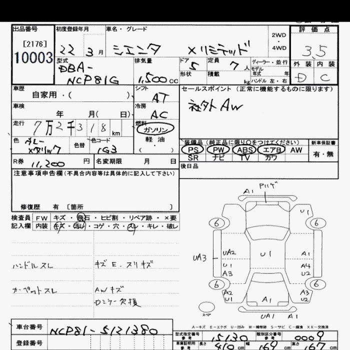 TOYOTA SIENTA X LTD - лот 10003