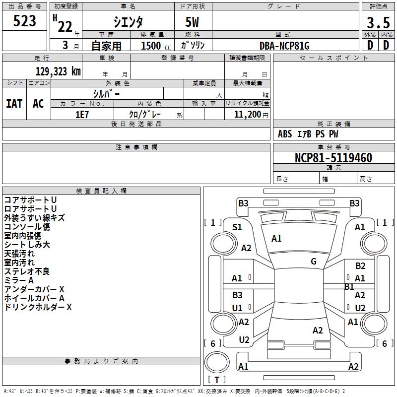 TOYOTA SIENTA - лот 523