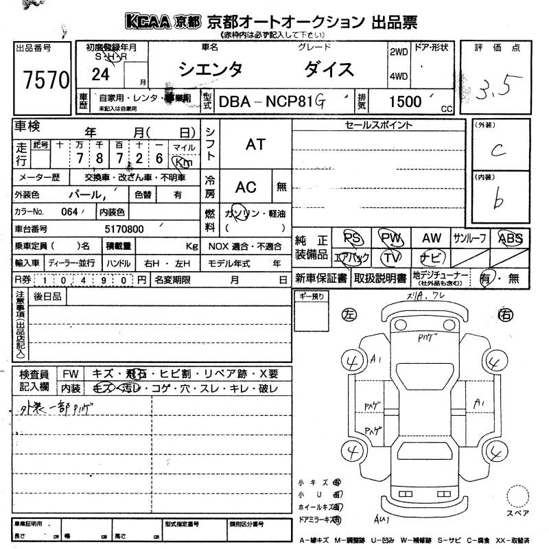 TOYOTA SIENTA DICE - лот 7570