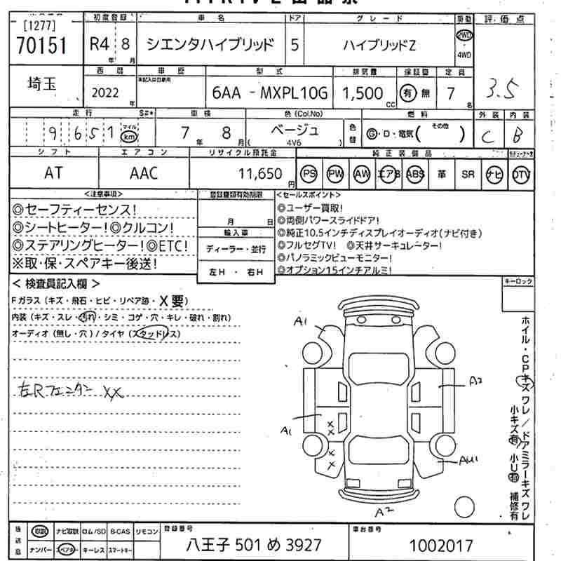 TOYOTA SIENTA HYBRID Z - лот 70151
