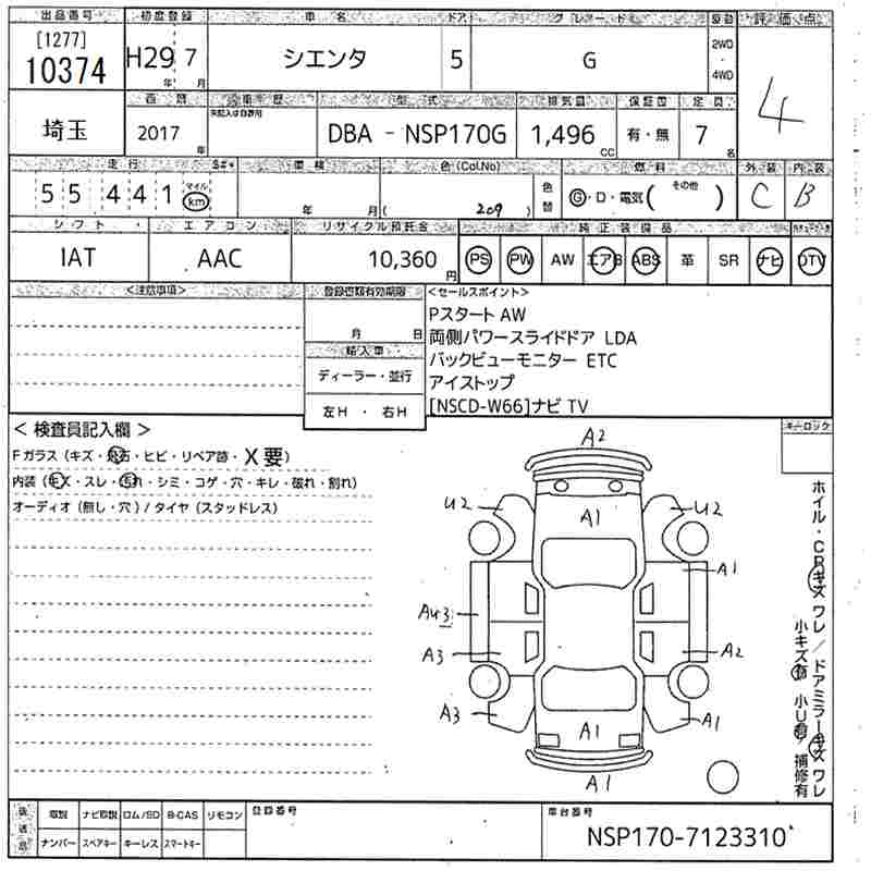 TOYOTA SIENTA G - лот 10374