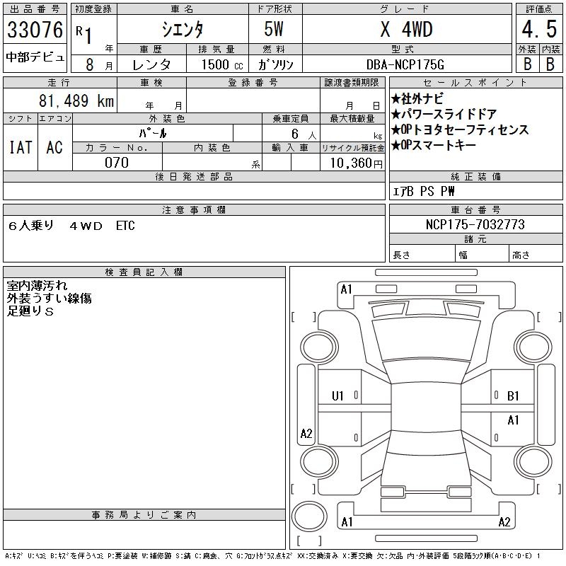 TOYOTA SIENTA X 4WD - лот 33076