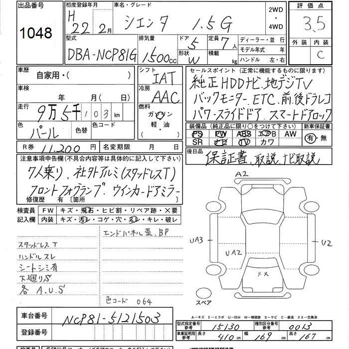 TOYOTA SIENTA G - лот 1048